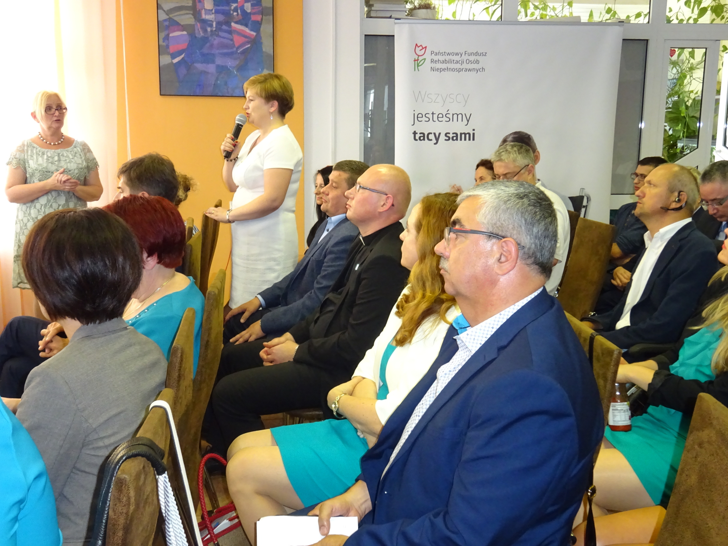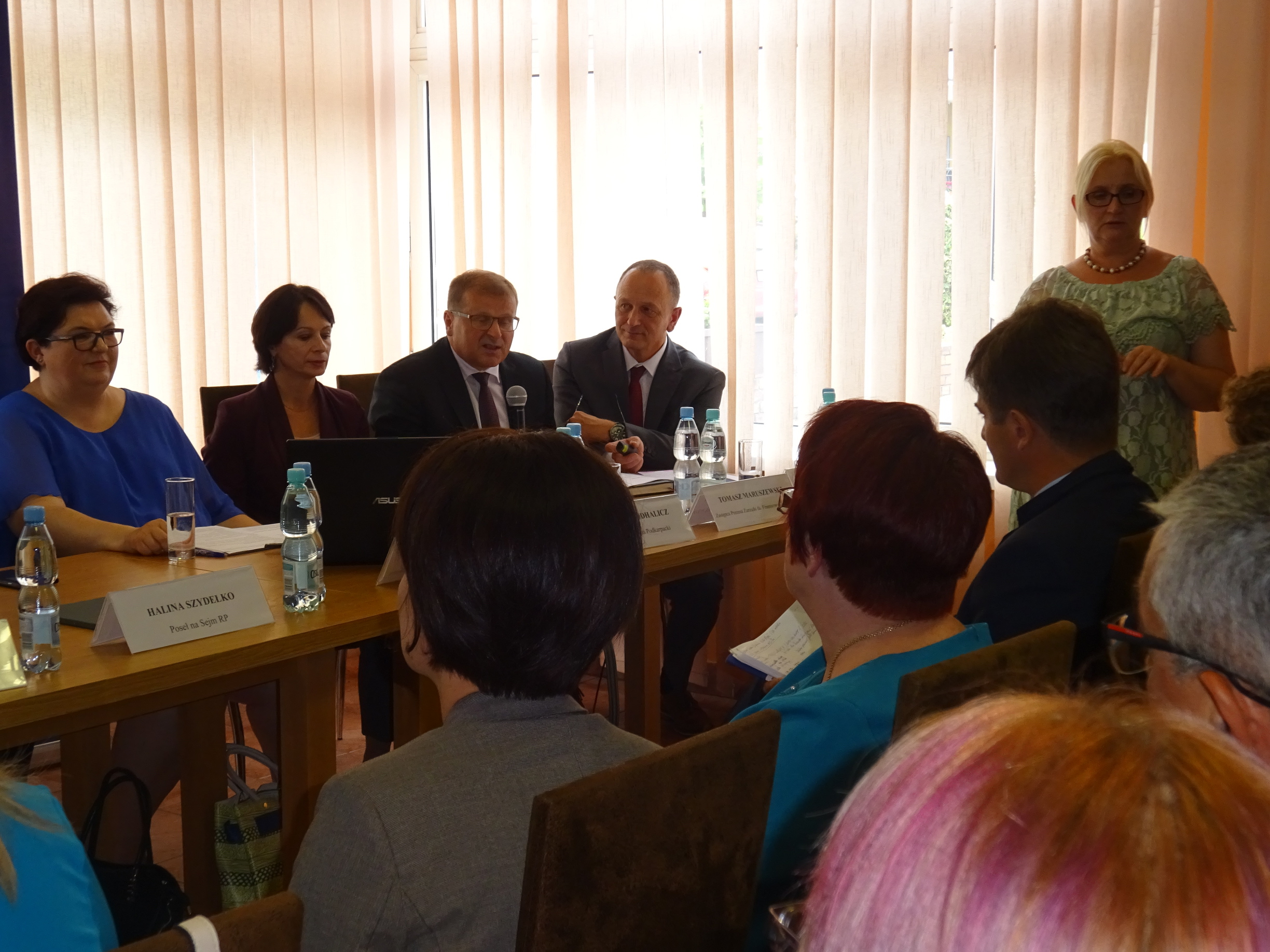 Następnie głos zabrali przedstawiciele PFRON Maciej Szymański i Tomasz Maruszewski, Posłowie na Sejm RP Krystyna Wróblewska i Halina Szydełko, Robert Bugaj Dyrektor NFZ w Rzeszowie, Dominika Tadla Zastępca Dyrektora Departamentu Europejskiego Funduszu Społecznego w Ministerstwie Rozwoju oraz Jerzy Jęczmienionka Dyrektor Regionalnego Ośrodka Polityki Społecznej w Rzeszowie.