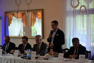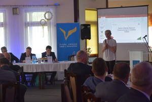 Dyrektor Śląskiego Oddziału PFRON p. Jan Wroński w swoim wystąpieniu szczegółowo omówił dotychczasowe obszary współpracy Oddziału Śląskiego PFRON z samorządami oraz zaprezentował rządowy program „Dostępność Plus” oraz program „Solidarnościowy Fundusz Wsparcia Osób Niepełnosprawnych”. Podkreślił również rolę samorządu terytorialnego w realizacji zadań na rzecz niepełnosprawnych mieszkańców, budowaniu długofalowych programów wsparcia tej grupy społecznej. Pracownik Oddziału Śląskiego p. Teresa Saczuk również zaprezentowała zagadnienia w zakresie Systemu Obsługi Wsparcia.