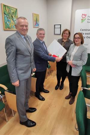 Podczas spotkania z Martą Mordarską - dyrektor Małopolskiego Oddziału PFRON, Spółdzielnię reprezentowali prezes - Ryszard Janas oraz Krzysztof Zagdan - zastępca prezesa - ds. technicznych.