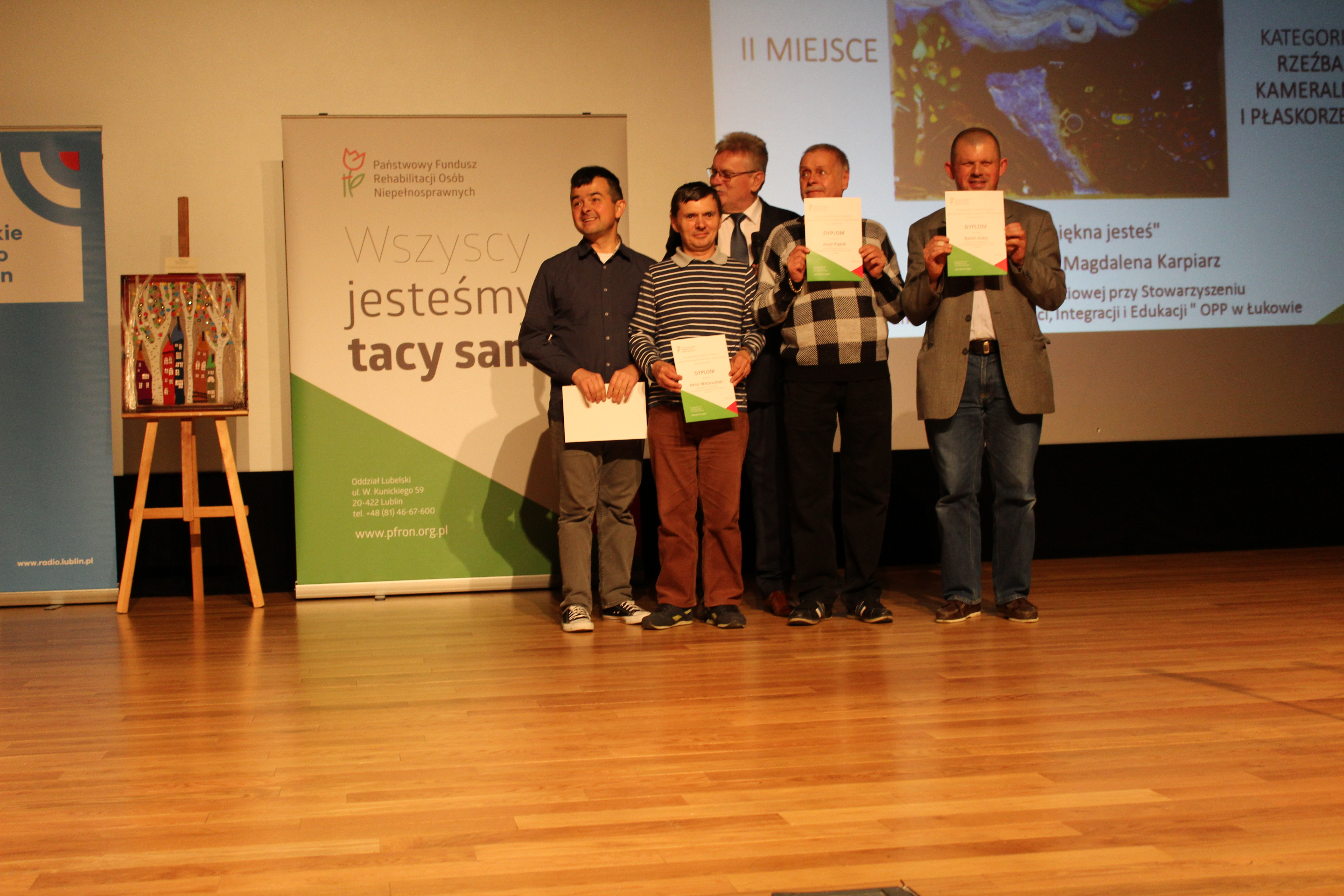- Na konkurs nadesłano ponad 160 prac, z 47 placówek naszego województwa. Ich poziom artystyczny i techniczny jest bardzo wysoki. Nagrodzone i wyróżnione rzeźby, grafiki, tkaniny, witraże oraz rysunki przekażemy do etapu ogólnopolskiego. Dziękuję wszystkim artystom, ich opiekunom, terapeutom i kierownikom, doceniając wysiłek włożony w przygotowanie konkursowych dzieł – mówił Jerzy Dębski, dyrektor Oddziału Lubelskiego PFRON.