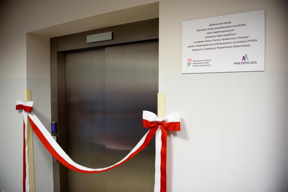 W Domu Pomocy Społecznej w Sieradzy 23 – letnią windę, która wymagała szybkiej wymiany, zastąpiła nowa, dofinansowana ze środków PFRON będących w dyspozycji Województwa Małopolskiego. Nowa winda oddana do użytku społeczności DPS w Sieradzy w dniu 6 grudnia przystosowana jest do potrzeb osób z niepełnosprawnościami i do przewozu łóżek szpitalnych. Na chwilę obecną w DPS mieszka 85 pensjonariuszek przewlekle psychicznie chorych i z niepełnosprawnościami.
