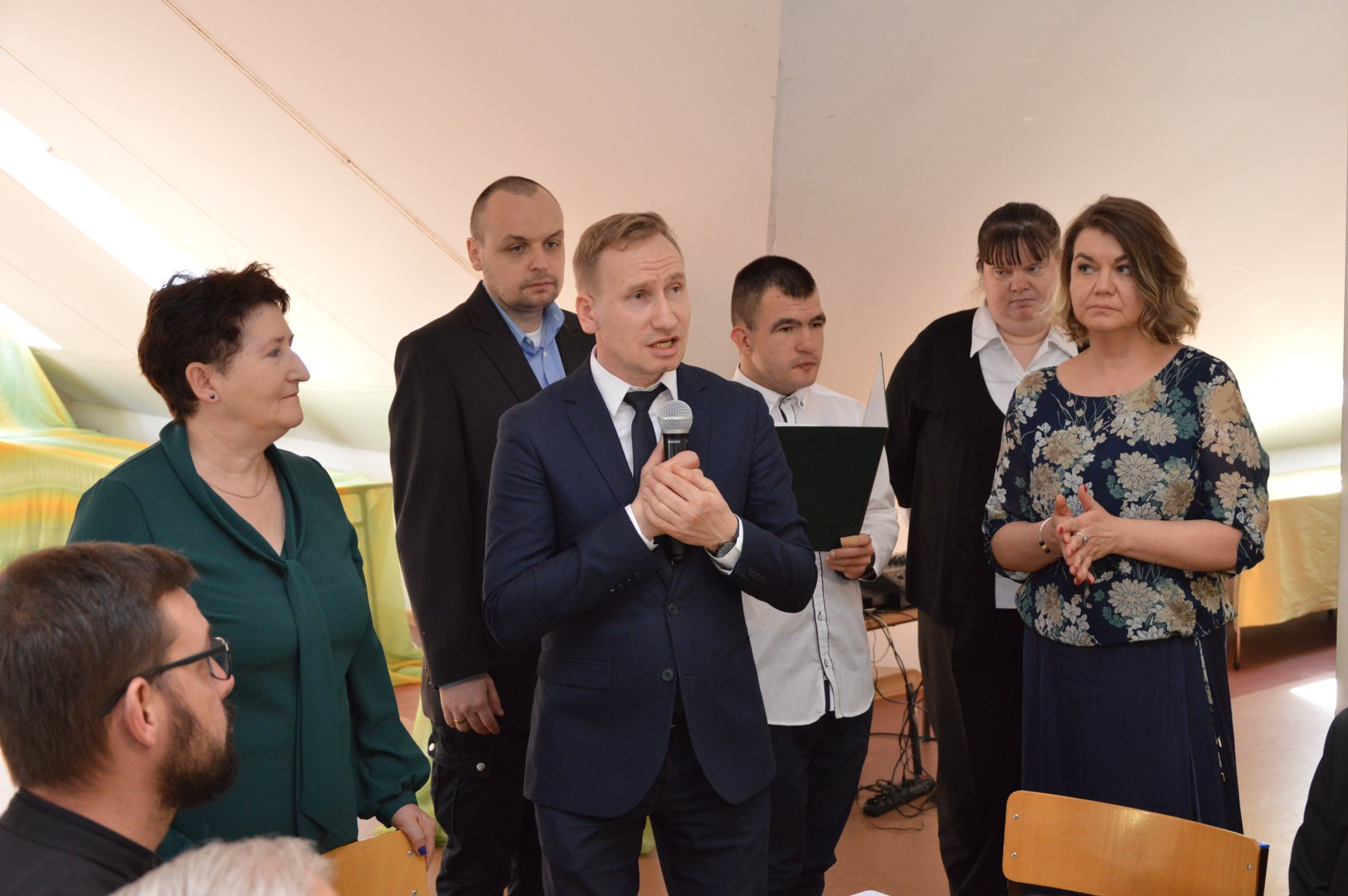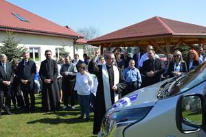 17 kwietnia br. odbyło się uroczyste przekazanie auta placówce w obecności władz powiatu zgierskiego oraz Dyrektora Oddziału Łódzkiego Państwowego Funduszu Rehabilitacji Osób Niepełnosprawnych. Aby podopieczni zawsze bezpiecznie wracali do domu auto zostało poświęcone oraz oficjalnie oddane do użytku poprzez symboliczne przecięcie wstęgi przez zaproszonych gości. Nowy bus zapewni bezpieczny i komfortowy transport uczestnikom placówki oraz mamy nadzieję, że będzie służył Stowarzyszeniu przez długie lata. Auto zostało w 70% dofinansowane ze środków PFRON.