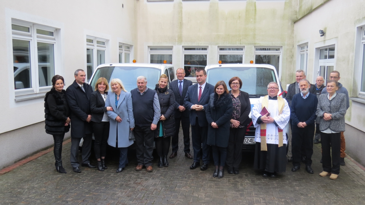 W obecności ww. gości przekazano kluczyki do busów członkom rady mieszkańców DPS. Następnie ks. proboszcz poświęcił busy. Ułatwią one m.in. podróżowanie do poradni specjalistycznych i poprawią komfort jazdy.