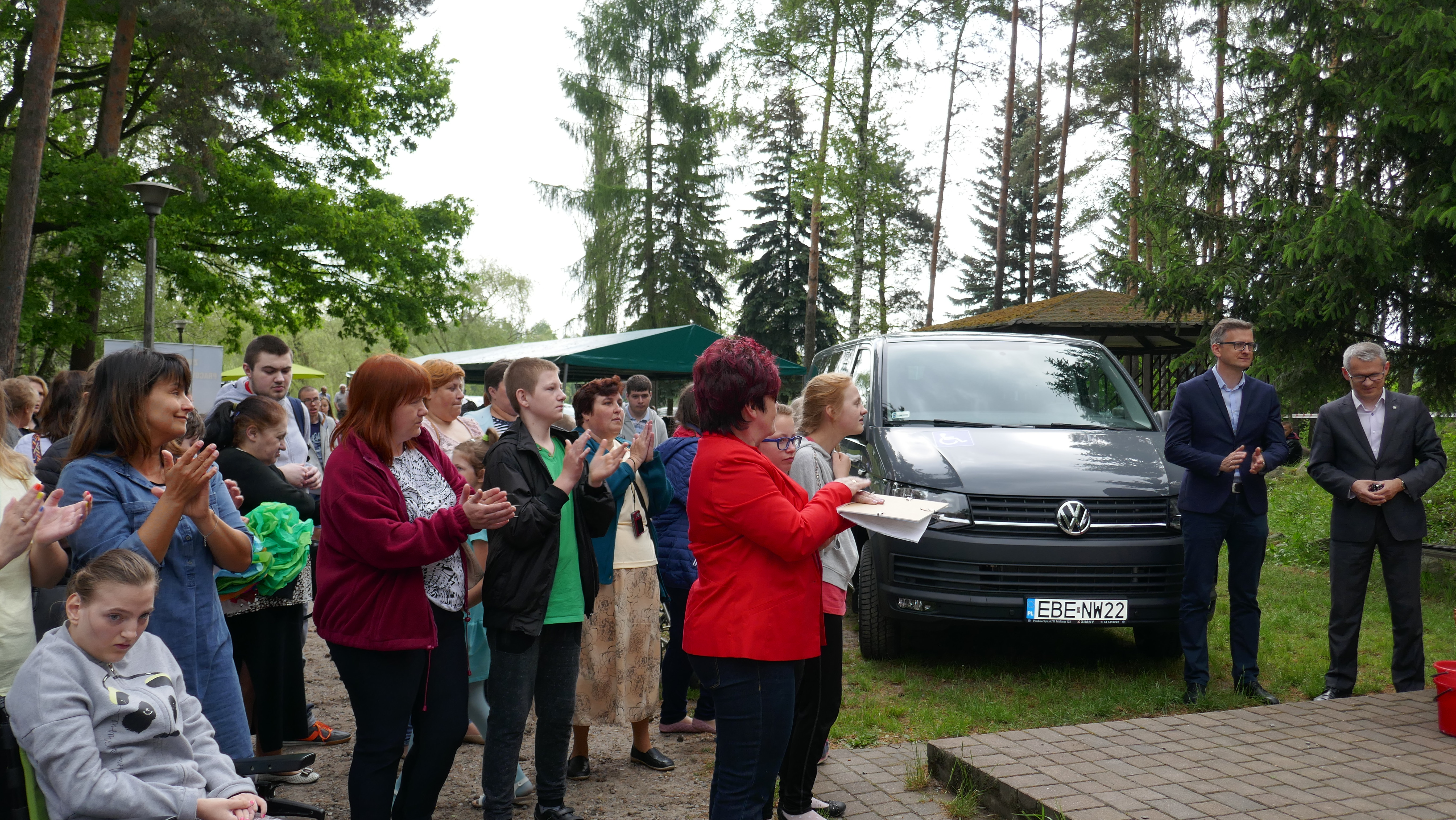 Nietypowy prezent dla placówki trafił również od starosty bełchatowskiego, który w imieniu samorządu powiatowego przekazał specjalistyczny samochód przystosowany do przewozu osób niepełnosprawnych.