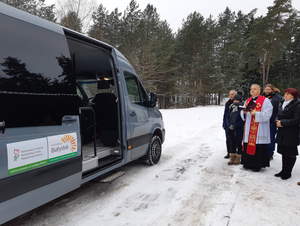 Nowy środek transportu, który będzie służył uczestnikom Warsztatu, został poświęcony przez Ks. Andrzeja Chutkowskiego, proboszcza parafii Świętej Trójcy w Supraślu, a następnie symbolicznie przekazany do eksploatacji przez p.o. dyrektora Podlaskiego Oddziału PFRON - Grażynę Bogdańską.