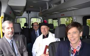 Po przywitaniu gości, przemowach i podziękowaniach, nastąpiło zmówienie modlitwy przez księdza prałata oraz poświęcenie pojazdu, a następnie uroczyste przecięcie wstęgi przez Annę Skupień – dyrektor Oddziału Wielkopolskiego Państwowego Funduszu Rehabilitacji Osób Niepełnosprawnych, Mariusza Seńko – Starostę Tureckiego oraz Sławomira Prentczyńskiego – Wójta Gminy Malanów.