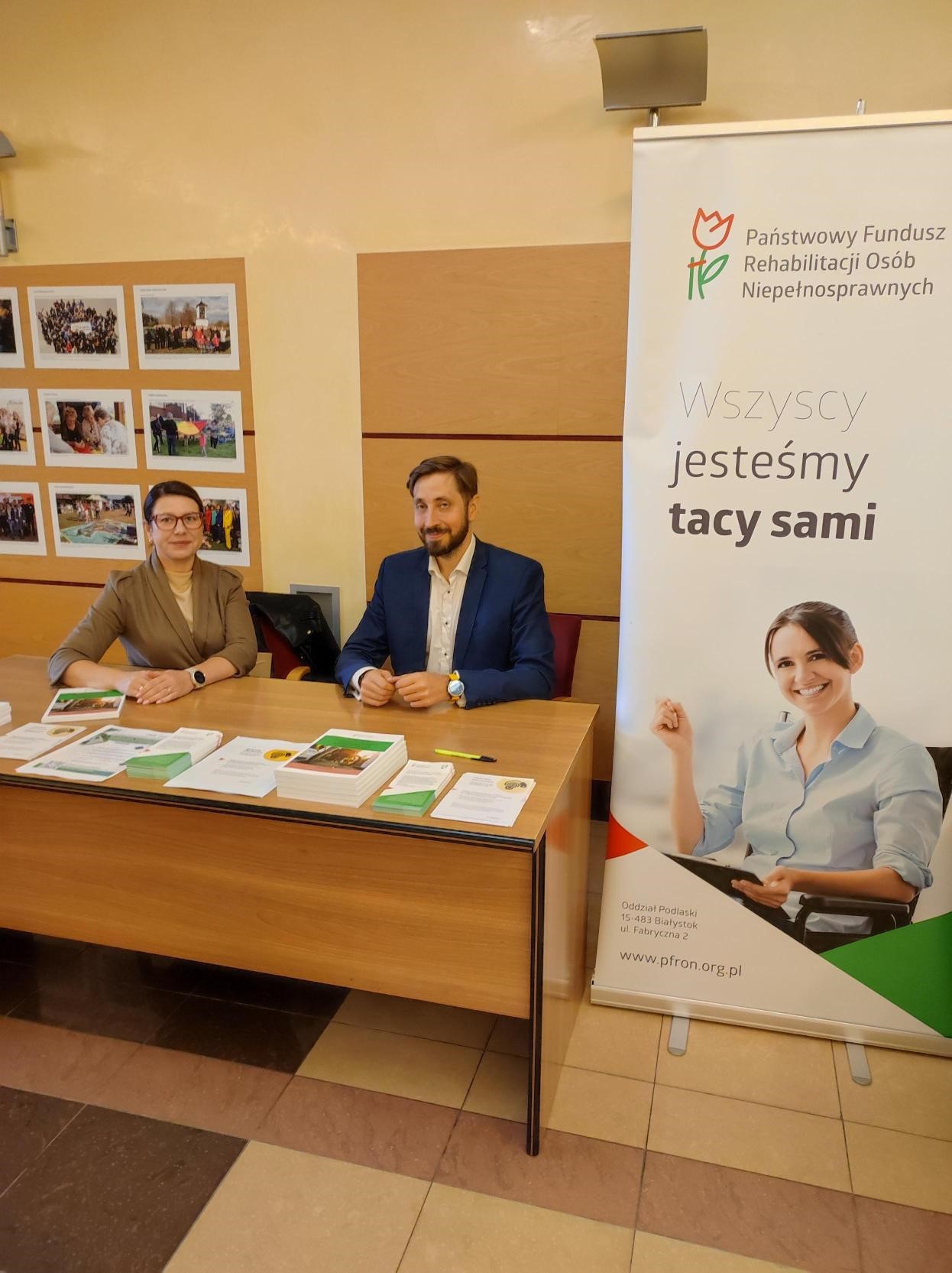Pracownicy PFRON, obecni na wydarzeniu, informowali uczestników o dostępnych formach wsparcia dla osób z niepełnosprawnościami, w tym o możliwości wypożyczenia aparatów słuchowych z wypożyczalni technologii wspomagających.