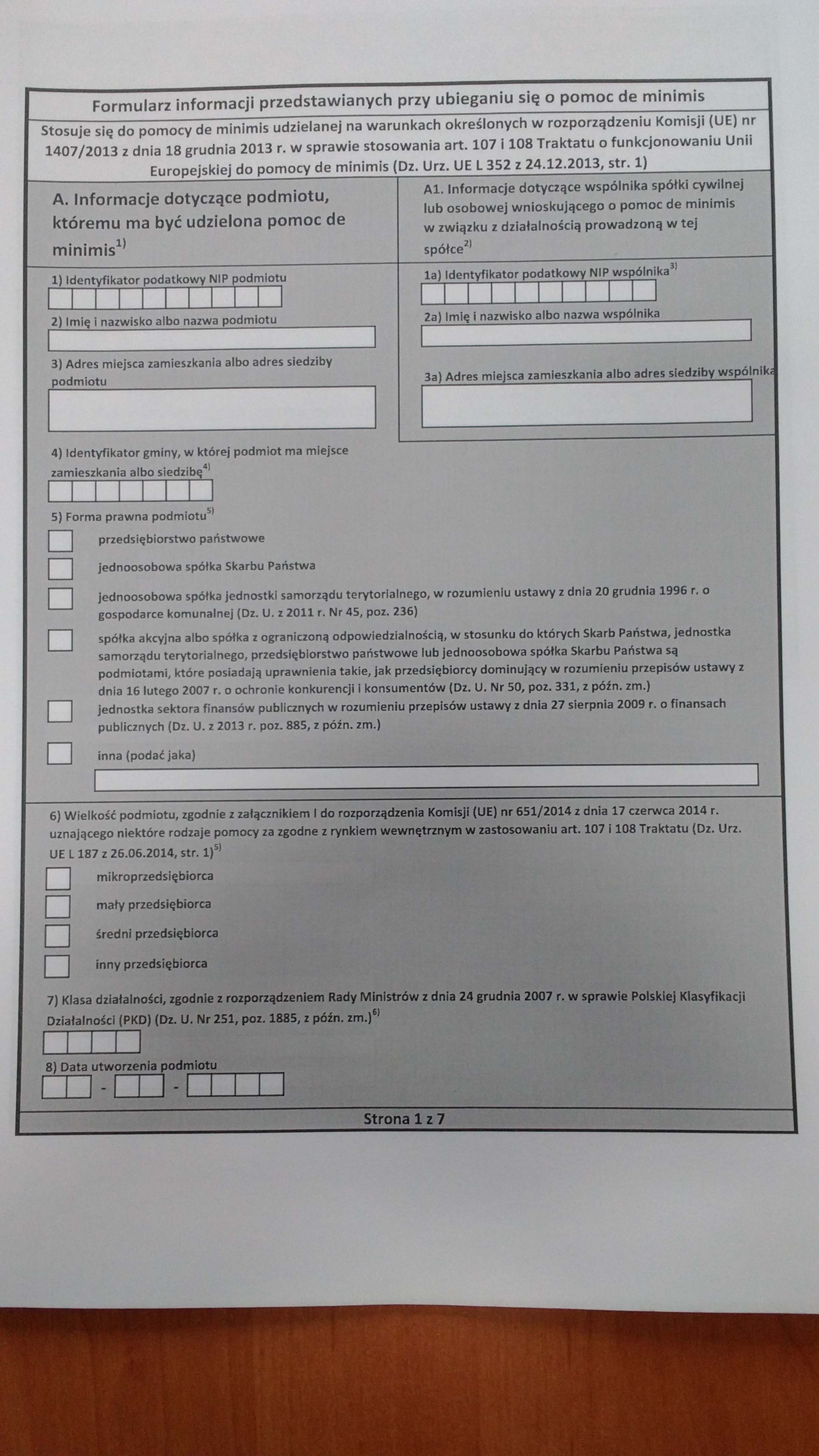 Państwowy Fundusz Rehabilitacji Osób Niepełnosprawnych przypomina, iż osoba nie-pełnosprawna prowadząca działalność gospodarczą zobowiązana jest do przesłania wraz z pierwszym składanym w danym roku kalendarzowym, wnioskiem o refundację składek bądź korektą wniosku (liczy się data nadania wniosku) Formularza informacji przedstawianych przy ubieganiu się o pomoc de minimis (INF-O-P-dM) bądź Formularza informacji składanych przy ubieganiu się o pomoc de minimis w rolnictwie lub rybołówstwie (INF-O-P-dR) .
