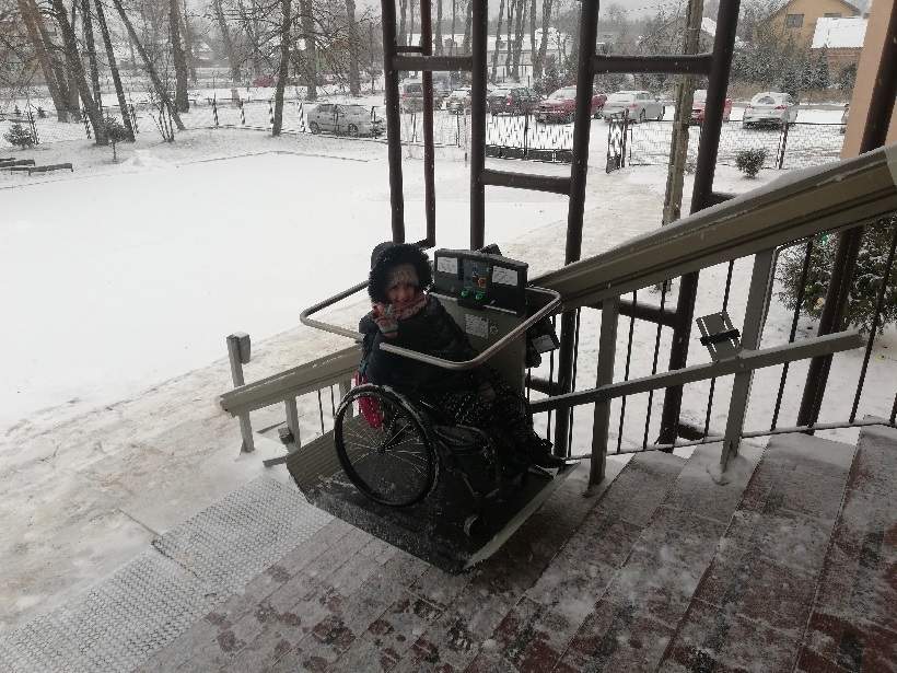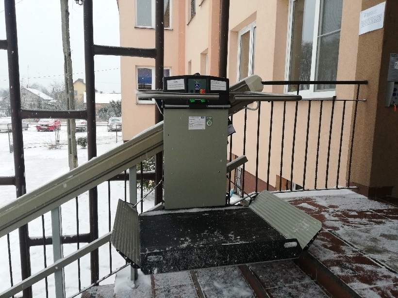 Zainstalowano urządzenie do pionowej komunikacji posiada napęd elektryczny, podest składany automatycznie ,długość toru jezdnego 420 cm, zaś wysokość podnoszenia wynosi 150 cm (różnica wysokości pomiędzy terenem a wejścia do budynku). W wyniku realizacji projektu pn. „Wybudowanie zewnętrznej platformy przyschodowej z przeznaczeniem dla osób niepełnosprawnych dla budynku Specjalnego Ośrodka Szkolno-Wychowawczego w Jońcu” zlikwidowano bariery w zakresie przemieszczania się i komunikowania uczniów niepełnosprawnych zwłaszcza z dysfunkcją narządów ruchu.