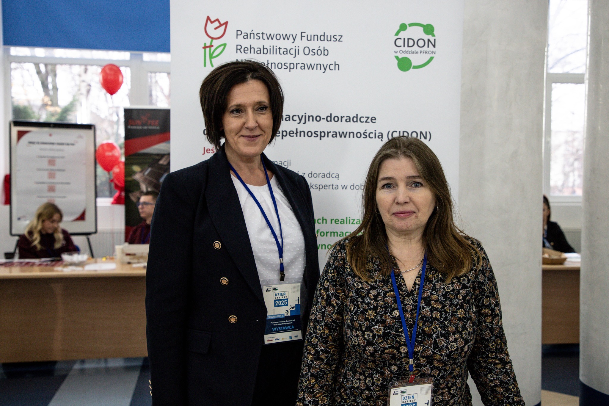 W godzinach 10:00–14:00 uczestnicy mieli okazję zapoznać się z ofertami lokalnych pracodawców oraz działalnością zaproszonych instytucji, w tym Państwowego Funduszu Rehabilitacji Osób Niepełnosprawnych. Pracownicy Oddziału Lubelskiego PFRON przygotowali stoisko informacyjne, na którym pełnili dyżur i odpowiadali na pytania uczestników. Przekazywali informacje na temat programów realizowanych przez Fundusz, dostępnych form wsparcia finansowego i rzeczowego, ulg oraz uprawnień przysługujących osobom z niepełnosprawnościami. Oddział reprezentowały Barbara Sadowska-Burlita oraz Irena Kijek. Wydarzenie było okazją do promocji działalności instytucji wspierających rynek pracy, a także nawiązania współpracy między przedsiębiorcami, studentami i absolwentami uczelni. Uczestnicy mogli wymieniać się informacjami, poznawać potrzeby rynku oraz nawiązywać kontakty zawodowe. Dzień Kariery 2025 po raz kolejny potwierdził swoją rolę jako platforma łącząca pracodawców, instytucje oraz osoby poszukujące zatrudnienia, wspierając rozwój rynku pracy w regionie.
