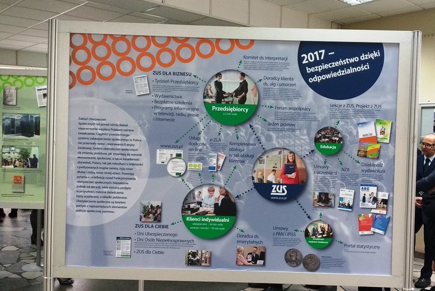 Ekspozycja powstała z okazji jubileuszu 80-lecia powołania ZUS. Oglądając wystawę można dowiedzieć się m.in. jak gazety opisały powstanie Zakładu Ubezpieczeń Społecznych i jak wyglądały pierwsze maszyny liczące oraz komputery w ZUS.