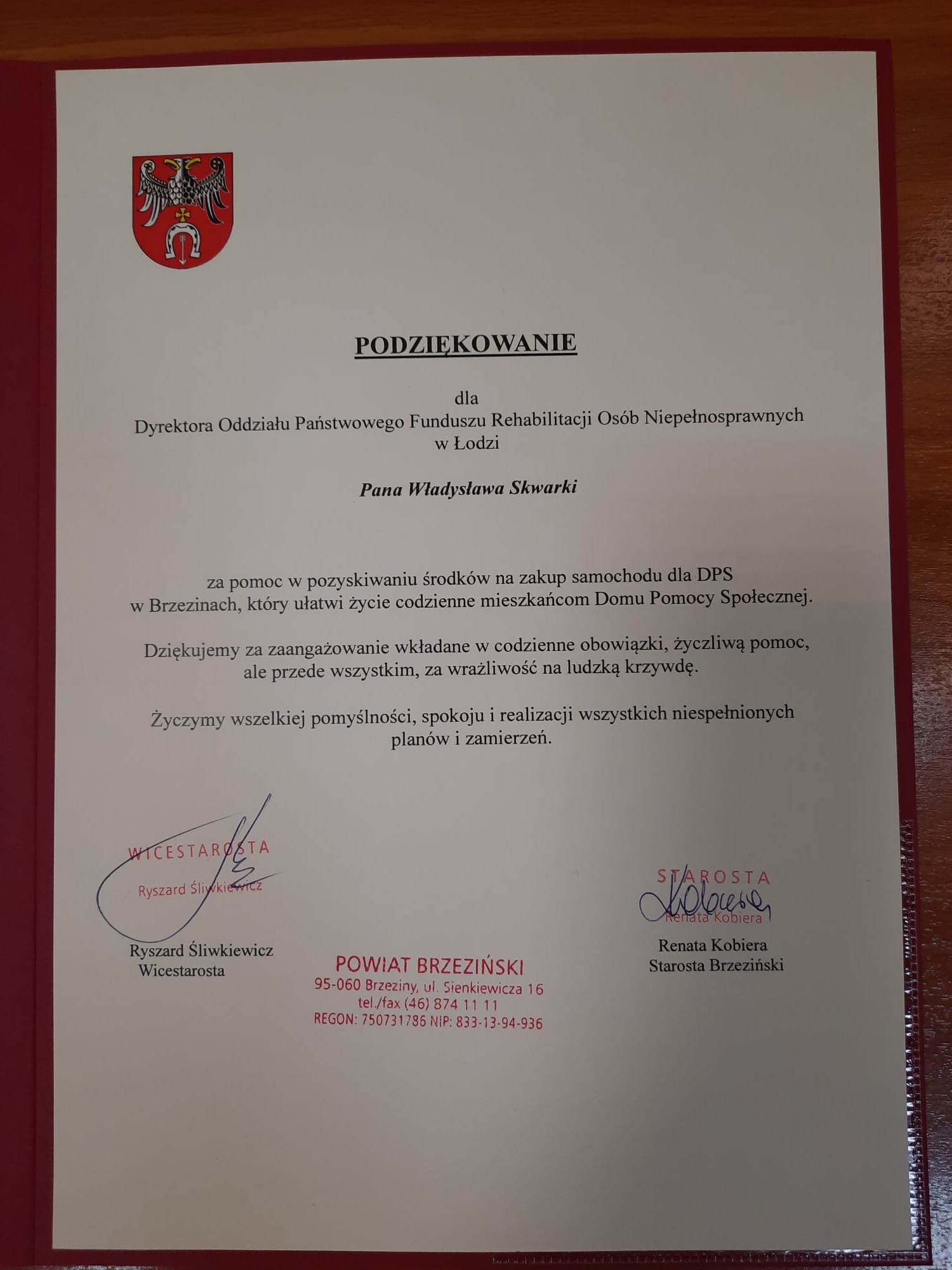 Powiat brzeziński zakupił samochód dla Domu Pomocy Społecznej. Państwowy Fundusz Rehabilitacji Osób Niepełnosprawnych w ramach Programu „Wyrównywania różnic między regionami III” dofinansował 120 tys. zł do zakupu pojazdu, a pozostałą kwotę przekazał powiat.