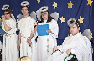 Niepełnosprawna młodzież wraz z wychowawcami przygotowała na to wyjątkowe spotkanie przedstawienie „Jasełka”, które zaprezentowała zgromadzonym gościom.