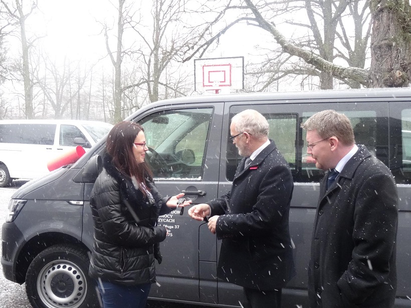 Wszystko za sprawą spotkania wigilijnego, w trakcie którego pani Katarzyna Balcerzak – dyrektor Środowiskowego Domu Samopomocy w Sowczycach odebrała klucze do nowego busa przystosowanego do przewozu osób niepełnosprawnych. Symbolicznie klucze do samochodu przekazali pan Stanisław Belka – Starosta Oleski oraz pan Łukasz Żmuda – dyrektor Oddziału Opolskiego Państwowego Funduszu Rehabilitacji Osób Niepełnosprawnych.