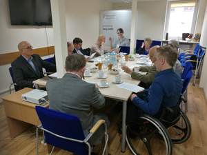 W siedzibie Oddziału Opolskiego Państwowego Funduszu Rehabilitacji Osób Niepełnosprawnych spotkali się pan Łukasz Żmuda – dyrektor Oddziału Opolskiego PFRON, przedstawiciele Wojewódzkiej Społecznej Rady do Spraw Osób Niepełnosprawnych oraz zaproszeni goście – pan Zbigniew Lenartowicz – dyrektor Zakładu Aktywności Zawodowej w Branicach oraz Teresa i Kazimierz Jednorogowie – założyciele Zakładu Aktywności Zawodowej Fundacji Dom Rodzinnej Rehabilitacji Dzieci z Porażeniem Mózgowym w Opolu.