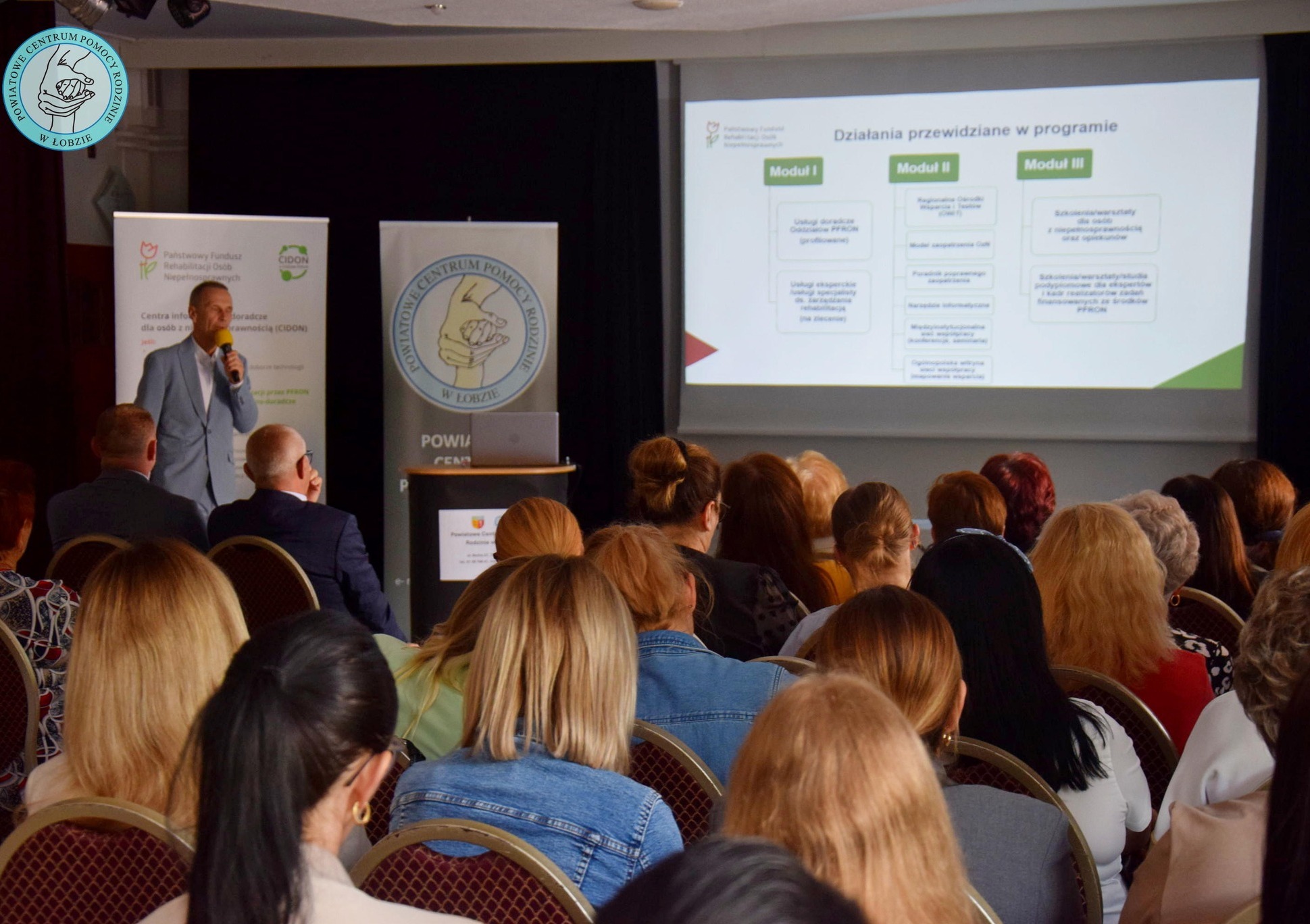 Reprezentanci PFRON, pan Ryszard Machałowski i pan Piotr Niciejewski – specjaliści z Centrum Informacyjno-Doradczego dla Osób z Niepełnosprawnościami (CIDON) – przedstawili uczestnikom szeroki wachlarz programów realizowanych przez Fundusz. Omówione zostały m.in.: