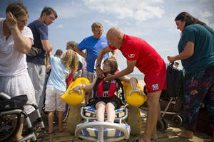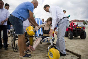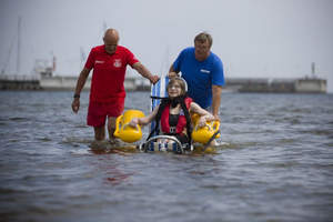 Dla wielu osób niepełnosprawnych poruszających się na wózku inwalidzkim Amfibia stanowi jedyną możliwość skorzystania z morskiej kąpieli.