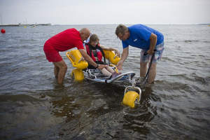 Specjalistyczny wózek zaprojektowany w Hiszpanii, pojawił się pilotażowo na plaży na Stogach w Gdańsku. Jego konstrukcja umożliwia łatwy transport OzN po plażowym piasku. Szerokie koła i podłokietniki wózka są pływakami o dużej wyporności zapewniającymi bezpieczeństwo w wodzie.