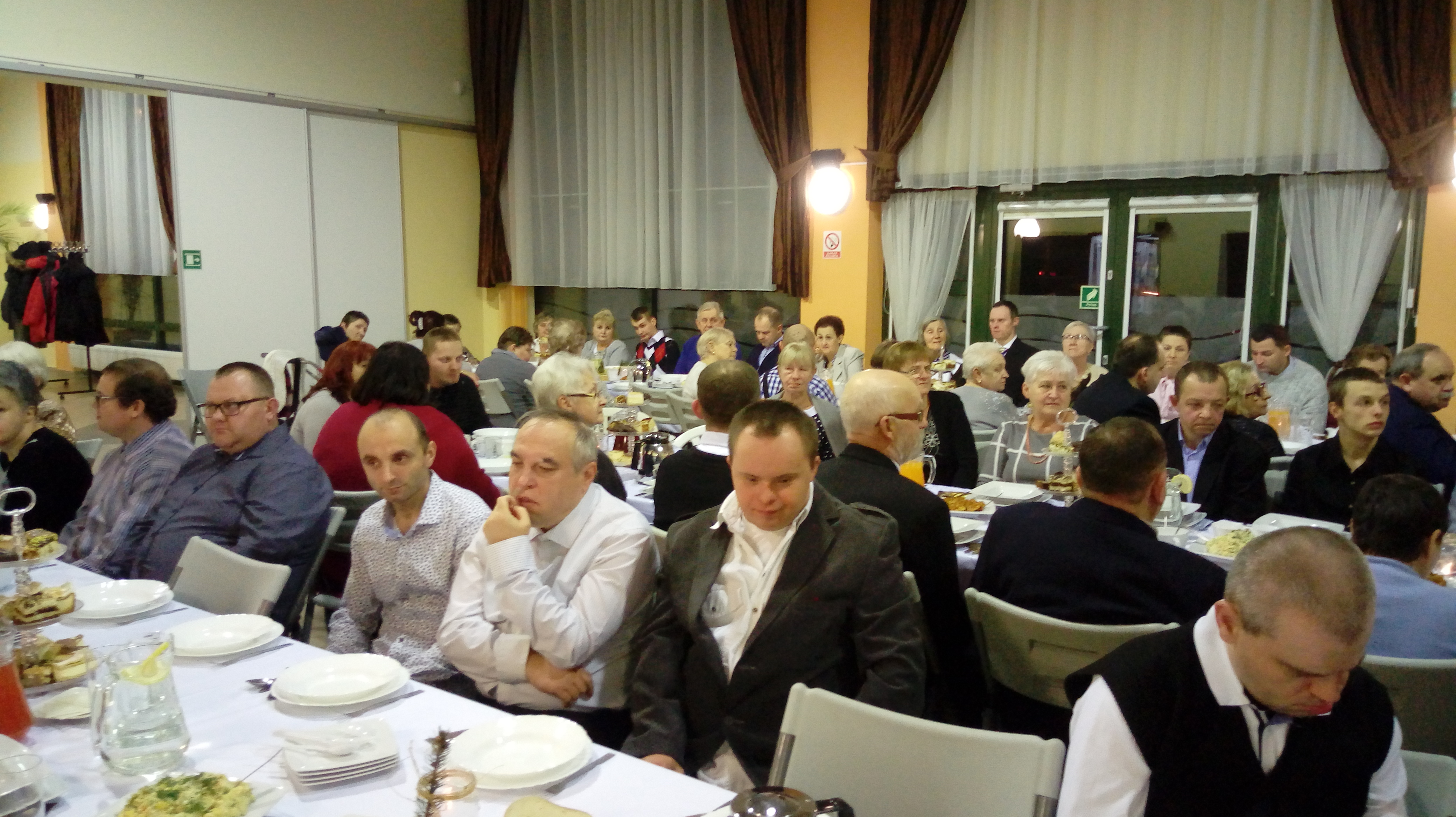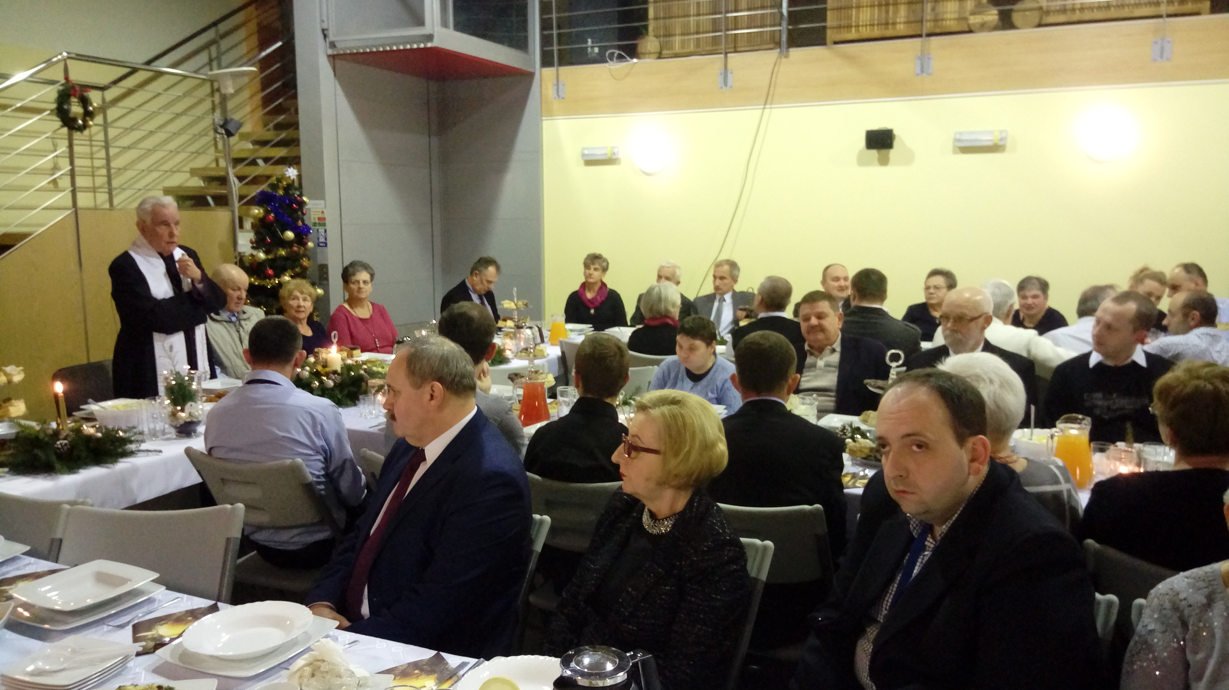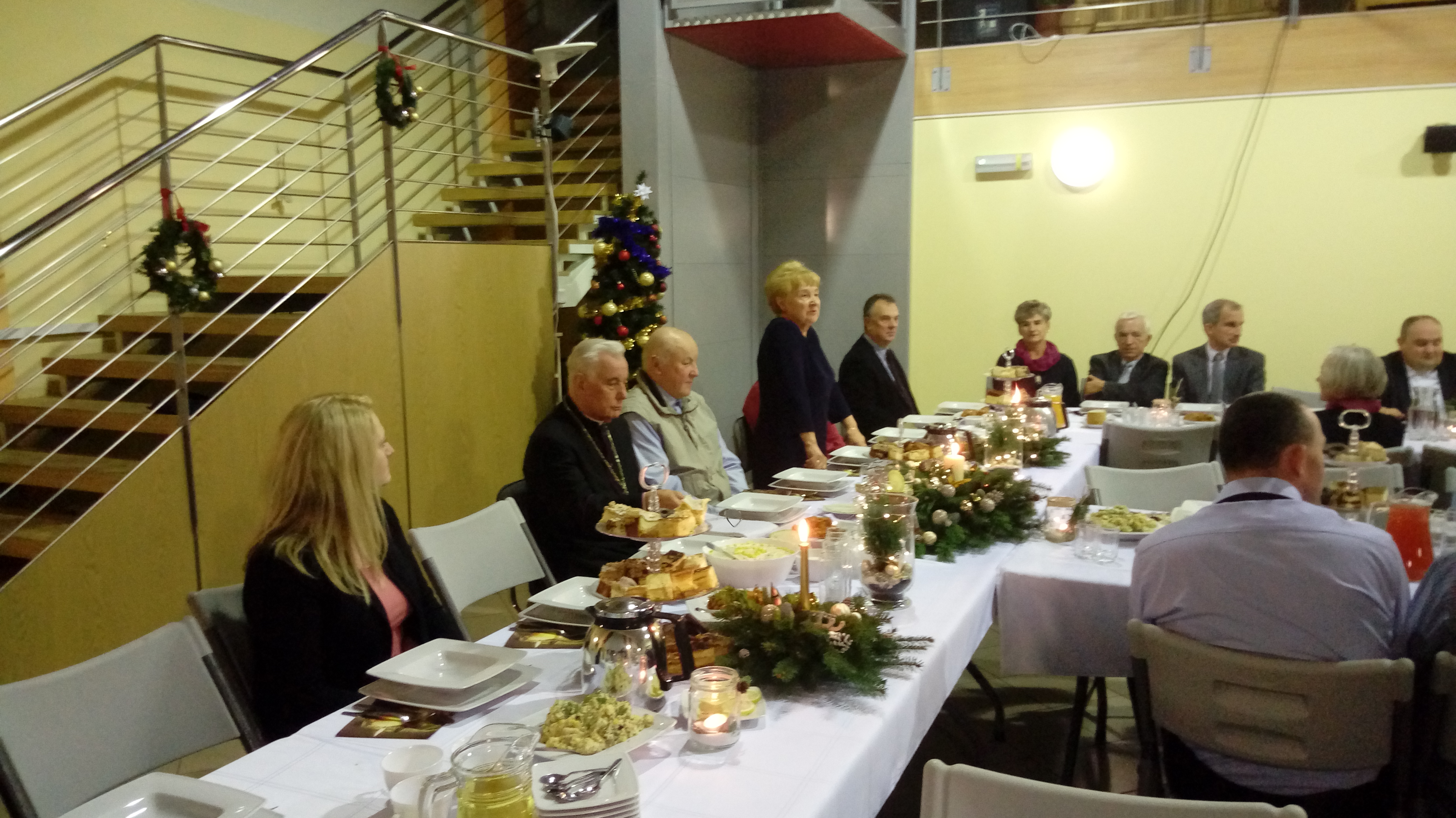 Zgromadzonych gości powitał Pan Janusz Drosik – koordynator mieszkalnictwa wspomaganego w PSONI. Po krótkim przemówieniu Wiceprzewodnicząca Zarządu Koła Pani Wiesława Drużyńska złożyła świąteczne życzenia wszystkim obecnym – podopiecznym, ich rodzinom oraz zaproszonym gościom. Zaprzyjaźniony z Kołem ksiądz prałat Henryk Ozga zainicjował wspólne śpiewanie kolęd, a następnie pobłogosławił wszystkich zgromadzonych gości. Uczestnicy uroczystej kolacji zostali poczęstowani smacznym barszczykiem oraz innymi potrawami wigilijnymi przygotowanymi przez Zakład Aktywności Zawodowej "Centralna Kuchnia" działający przy PSONI Stargard.