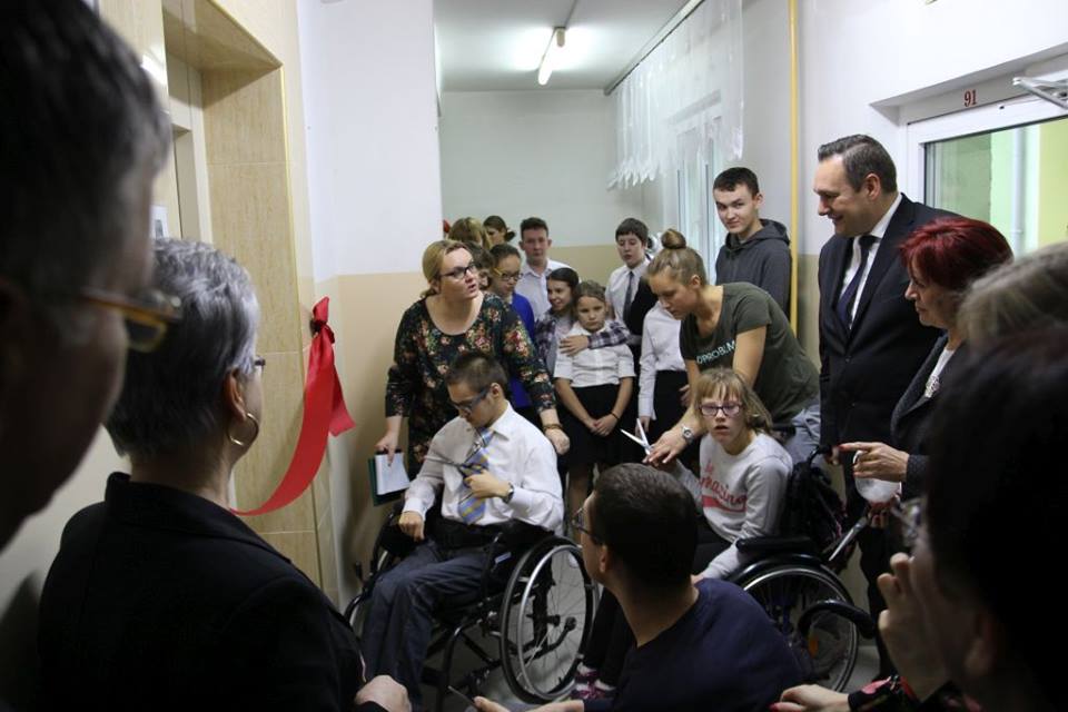 Szkolny Ośrodek Szkolno-Wychowawczy w Sokółce ma wymarzoną windę. Inwestycja była wynikiem wykonania projektu pn. „Windą do nieba – likwidacja barier w zakresie umożliwiającym osobom niepełnosprawnym poruszanie się i komunikację” realizowanego ze środków PFRON w ramach programu „Wyrównywanie różnic między regionami 2017”. W uroczystości otwarcia, które odbyło się 5 grudnia wzięła udział p.o. dyrektora Oddziału Podlaskiego PFRON Grażyna Bogdańska. Wychowankowie SOSW w Sokółce na tę okazję przygotowali koncert, deklamowali wiersze, a także sami upiekli pyszne pączki.
