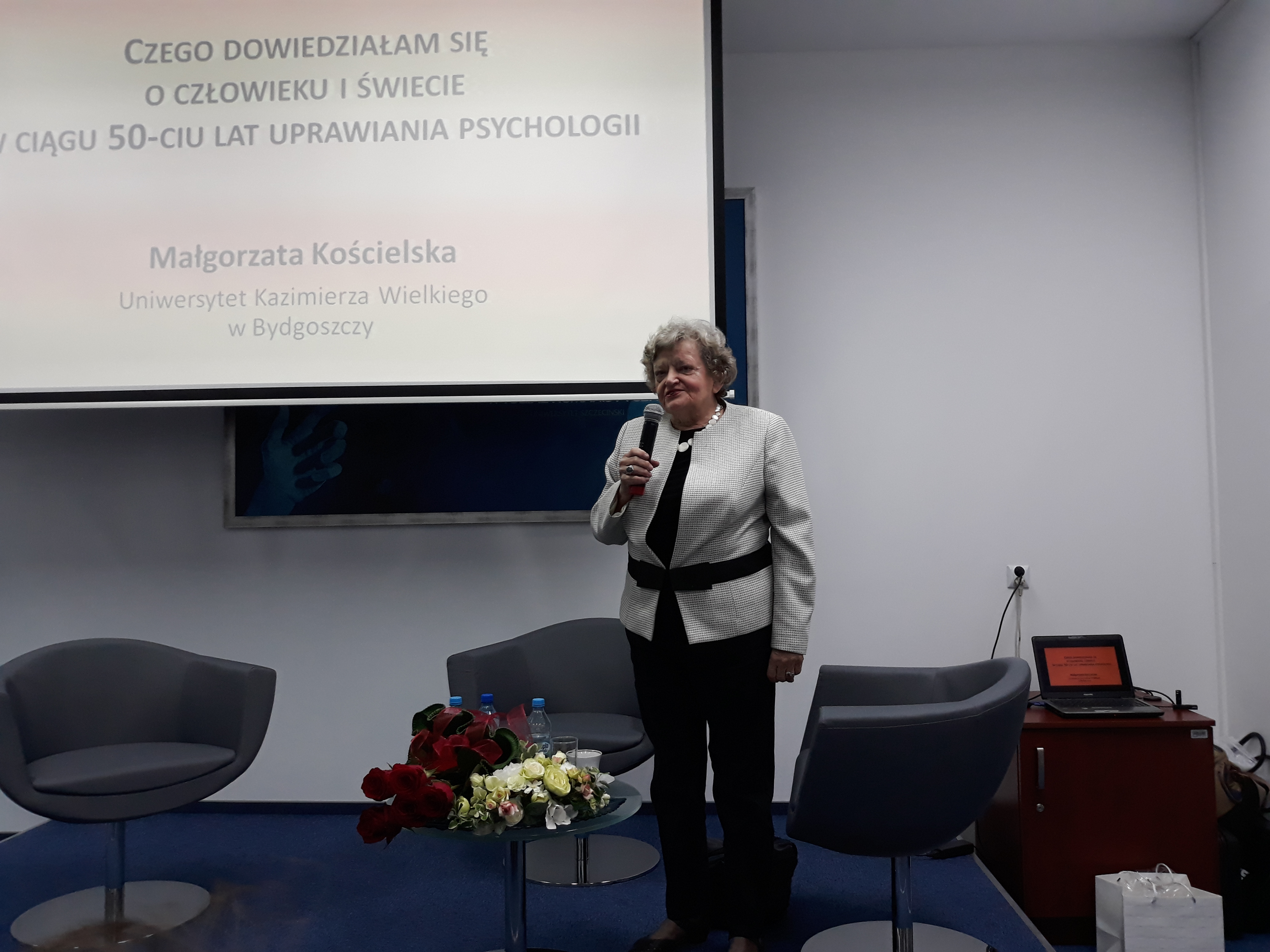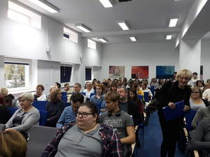 Po zakończeniu wykładu pani profesor odpowiadała na pytania słuchaczy, a także promowała nową publikację swojego autorstwa pt. "Moje życie z psychologią - pół wieku razem".