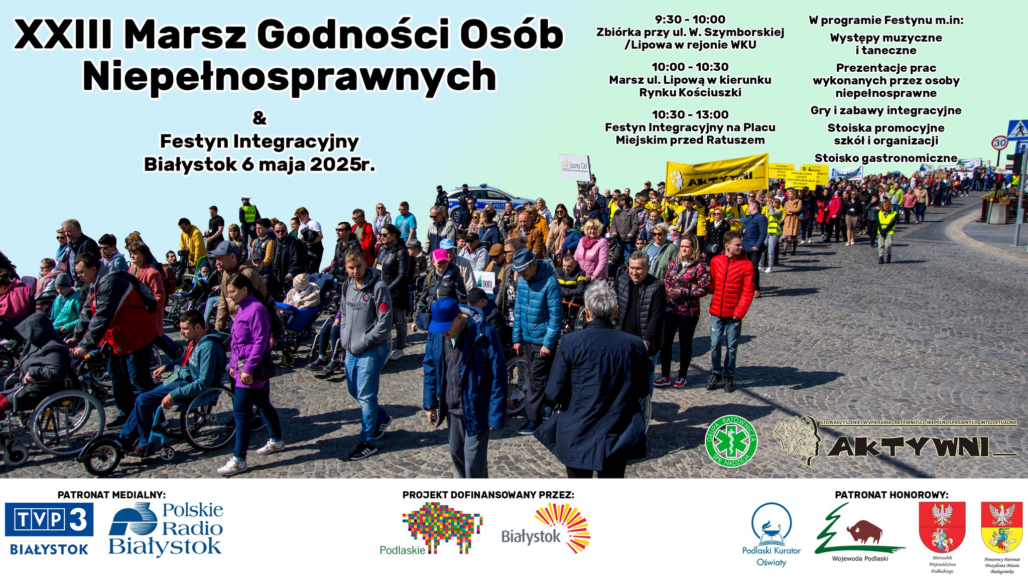 W dniu 6 maja 2025 roku w Białymstoku odbędzie się XXIII Marsz Godności Osób Niepełnosprawnych oraz towarzyszący mu Festyn Integracyjny. Organizatorem wydarzenia jest Stowarzyszenie Wspierania Aktywności Niepełnosprawnych Intelektualnie „Aktywni”.