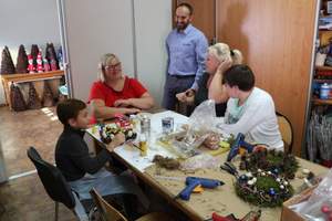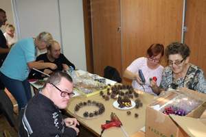 W ramach projektowych spotkań integracyjnych ich uczestnicy nie tylko mogli w praktyce zapoznać się z codzienną pracą Warsztatów Terapii Zajęciowej w Piaskach, ale mieli też okazję wspólnie pod okiem terapeutów zajęciowych popracować ze swoimi podopiecznymi w poszczególnych pracowniach ww. placówki. Podczas zajęć przygotowywano praktyczne stojaki z drewna, pieczono ciastka, wykonywano ozdoby świąteczne, jak również przygotowywano oryginalne zaproszenia na różnorodne okazje. Integracja rodzin osób niepełnosprawnych zakończyła się wspólną zabawą karaoke oraz tańcami.