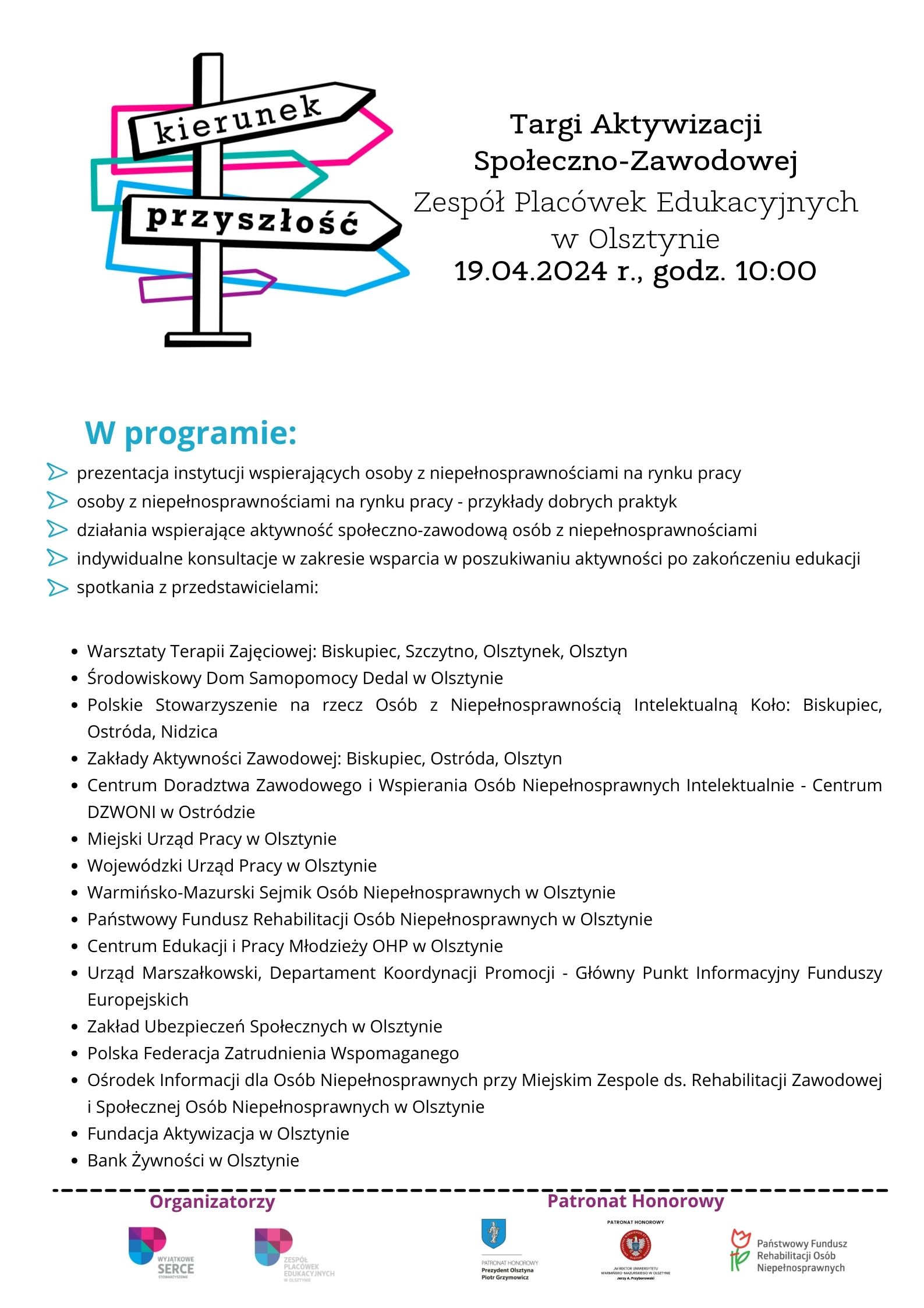 Targi odbędą się 19.04.2024 r. o godzinie 10:00 w Zespole Placówek Edukacyjnych w Olsztynie